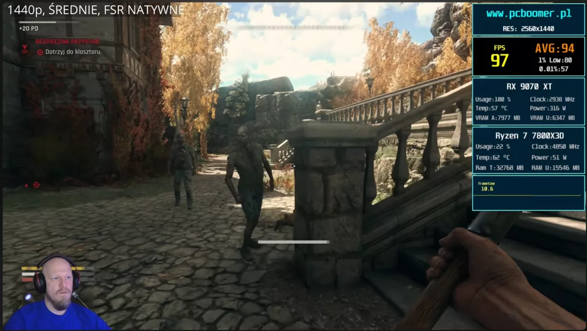 RX 9070 XT sprawuje się w Dying Light: The Beast znakomicie, zarówno w 1440p, jak i w 4K, pod warunkiem że zaakceptujemy korzystanie z FSR. A jest co akceptować: najnowsza odsłona skalera AMD wygląda bardzo dobrze i nie stanowi żadnego kompromisu. Karta naturalnie wpisuje się w ekosystem monitorów o wysokim odświeżaniu, a jej kultura pracy, zarówno pod względem temperatur, jak i poziomu głośności, nie budzi żadnych zastrzeżeń.