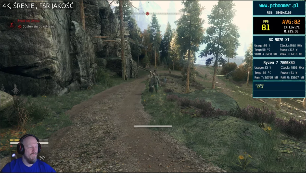Rozwiązanie okazało się identyczne jak w 1440p na Ultra: FSR w trybie Jakość. Bez generatora klatek karta osiągnęła ponad 80 FPS i trzeba przyznać, że Dying Light: The Beast w 4K, nawet na ustawieniach średnich, wygląda bardzo dobrze. Scenariusz w pełni grywalny.